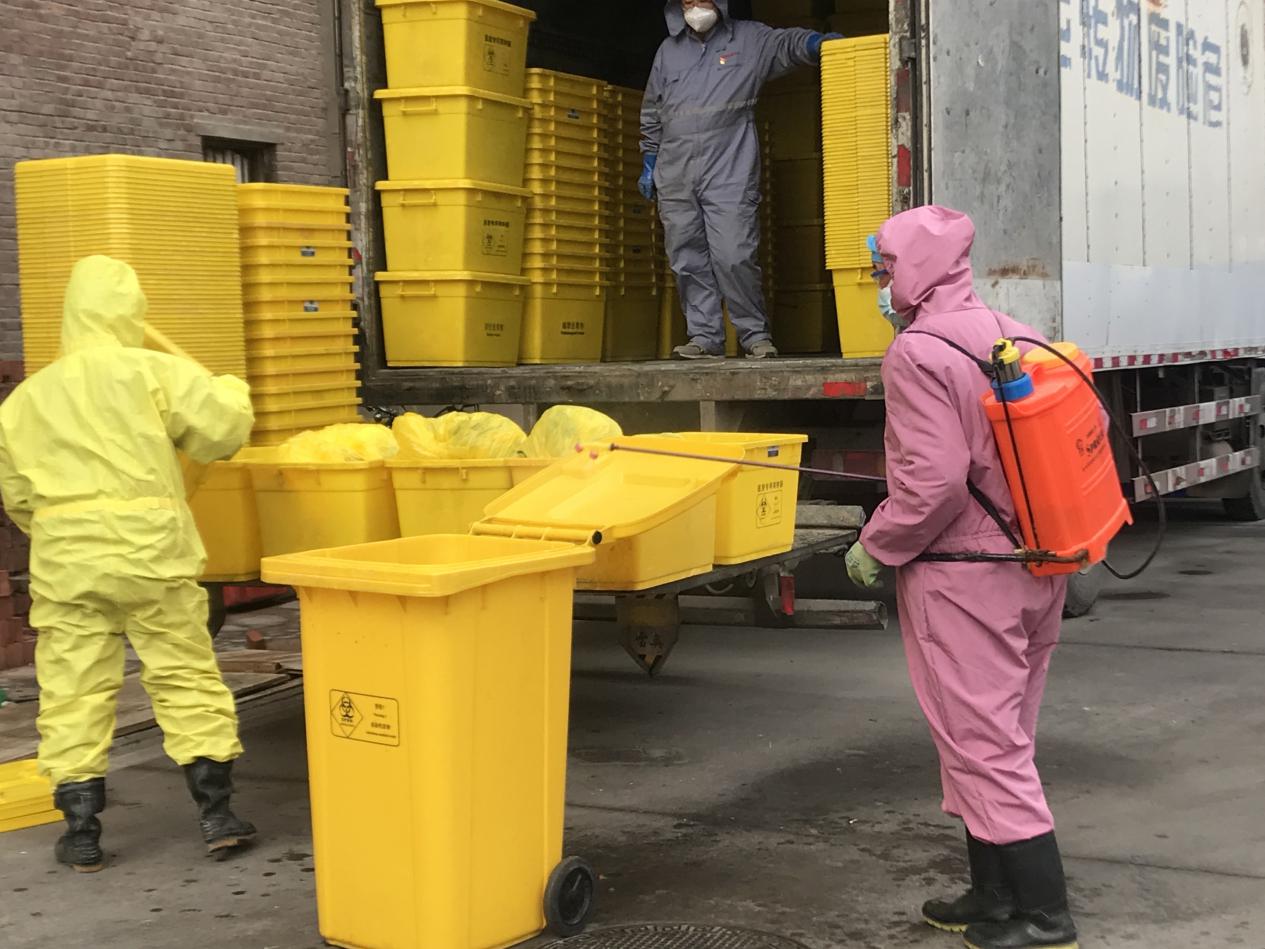做好清洁消毒:期间对物业工作人员就“新冠”相关知识、疫情期间强化个人防护及消毒隔离等知识内容进行了系统全面的培训;组织物业员工对全院所有区域进行专项消毒,2次/日,发热门诊、门诊喷洒消毒4次/日,对呼吸科所有病房每日消毒,1月24日之前对已进终末消毒的病房喷洒消毒;对隔离病区进行彻底清洁及消毒;进一步规范了医废专职人员关于“新冠”医废的区域划分、分类标识,合理转运路线(路线最短、人员最少、污染最少)及时间控制;及时向省、市、区级环保部门上报医废转运量;为避免医务人员发生交叉感染,积极协调并对住院部①、住院部②、住院部⑤、住院部⑥及儿童医院电梯运行情况进行调整;同时按照医务处的指派承担了确诊或疑似新冠转诊后诊区、运送路线、电梯等的终末消毒工作。