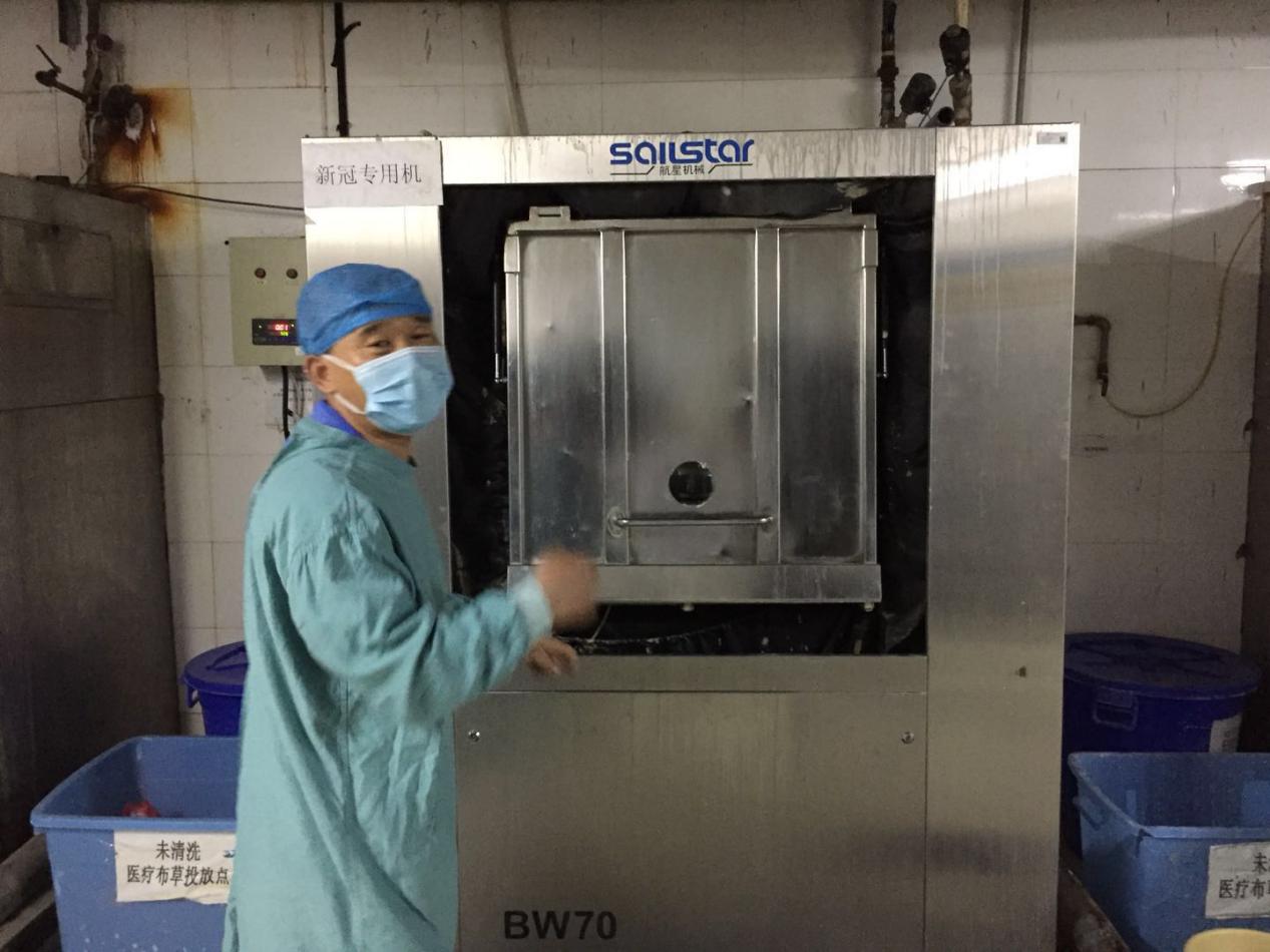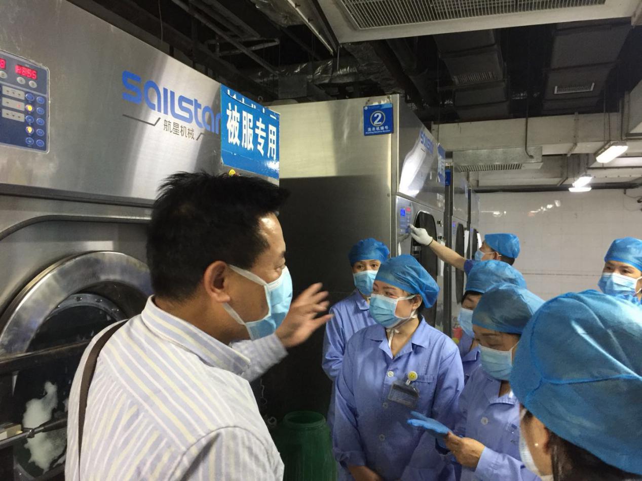 规范洗涤流程:洗涤中心接到医院对疫情的工作安排后,立即传达、通知有关人员到岗,并对有关事项进行了布置。对所有工作人员动向及时掌握,并对应医院要求,上报有关部门。精心组织要求所有人员,工作期间做到安全防护,戴口罩、帽子、手套和鞋套。对发热门诊洗涤物品做到专人专车运送、清洗。严格按规定做好发热门诊洗涤物品的消杀工作及人员安全防护工作。