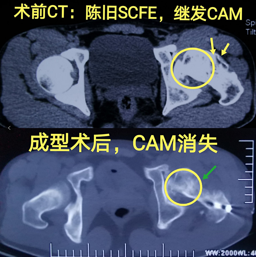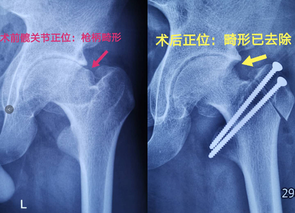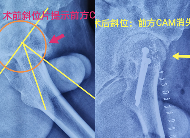 3. 已有文献证明,股骨头颈部的畸形骨赘是导致继发性髋骨关节炎的明确病因,早期成型去除撞击后可阻止髋骨关节炎的进展,避免年轻患者发生髋关节不可逆性损害而不得已接受髋关节置换。