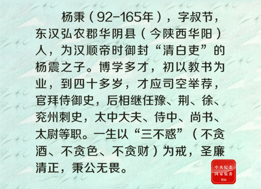 历史上的监察官 | 杨秉:以“三不惑”为戒 清廉一生