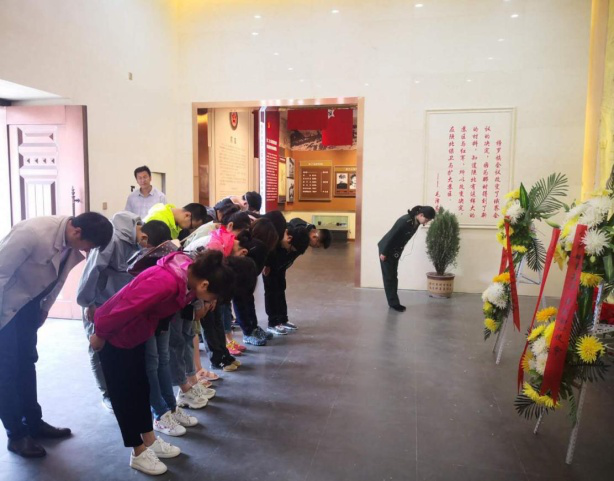 纪念馆前,全体党员和帮扶队员们向人民英雄敬献花篮,三鞠躬缅怀先烈,寄托哀思,面对鲜艳的党旗,重温入党誓词。在讲解员的带领下,大家仔细聆听革命先烈的英勇事迹、感受英雄热血情怀、继承发扬革命传统。通过一幅幅定格的真实图片、大量的历史实物展品等,深入了解了中共中央政治局榜罗镇会议的重大历史意义。