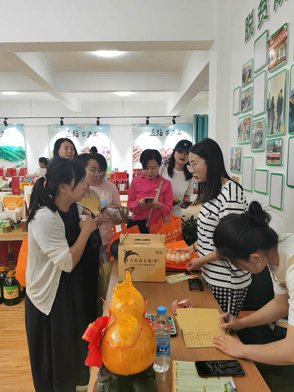 返程路上,大家还参观了正路农特产品展销中心。由当地政府精心筛选出的生态小杂粮、砂地和尚头面、冷榨胡麻油、林下生态鸡等一大批扶贫产品尽收眼底。所有产品有序摆放、种类丰富、品质优良,深受我院职工的欢迎,大家积极踊跃,“以买代帮”,通过消费方式带动当地农产品销售,促进当地经济产业发展,引导当地老百姓摆脱贫困走向富裕,为贫困群众增收脱贫贡献自己的力量。