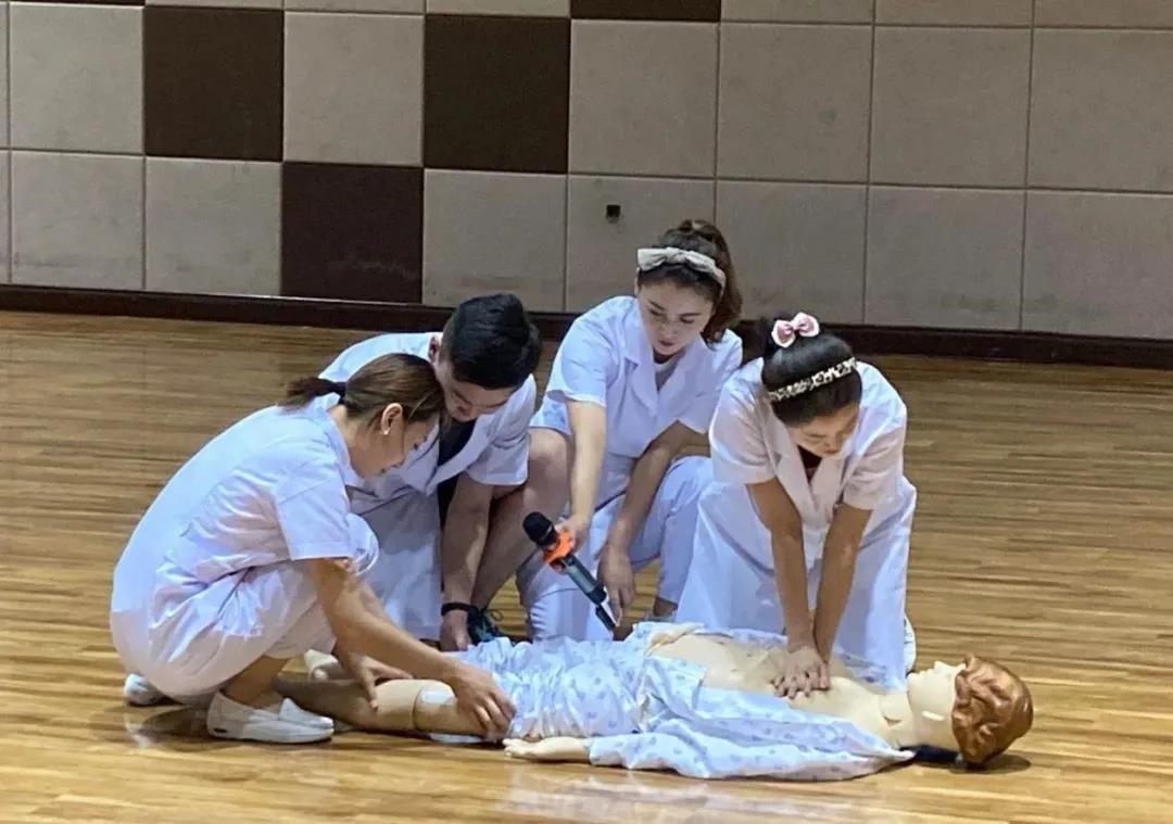 在急救实操学习课堂上,警官学员们认真学习,积极提问,认真回答急救理论知识。在实际操作训练中,警官学员们积极参与,不停地向我院医护人员咨询请教,争先恐后对着模型反复练习,活动气氛活跃。