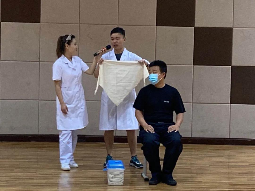 8月13日,急重症医学科党总支第一党支部开展了主题党日活动暨急救知识进警营活动。重症医学科一病区主任曹雯带领一病区护士长牛芳、科室党员对甘肃省警察职业学院(魏家庄校区)约210余名学员进行了基本急救知识及技能培训。