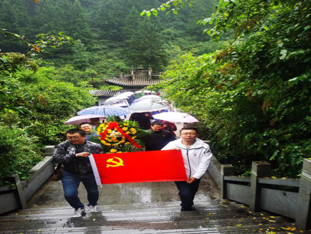 青山埋忠骨热血照千秋。全体党员怀着无比崇敬的心情,在倾盆大雨中瞻仰烈士陵园,向革命烈士纪念碑敬献花篮,深深的三鞠躬寄托浓厚哀思,表达深切缅怀之情。面对鲜红的党旗,全体党员举起右手,重温入党誓词。一字一句,铿锵有力,一字一句,发自内心。