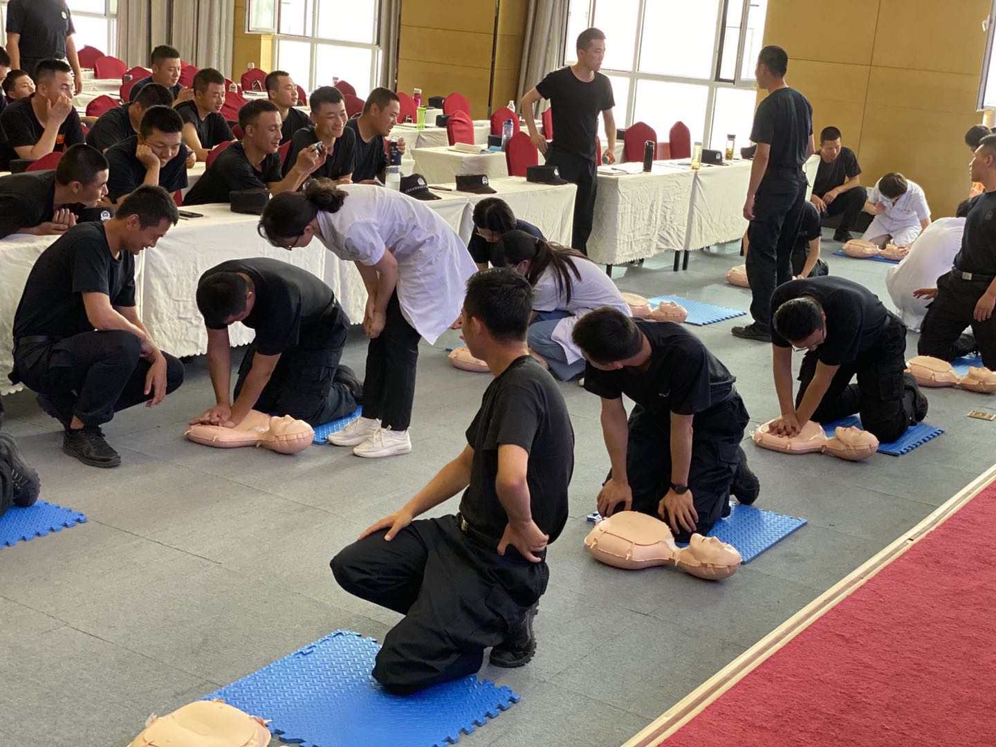 一下午的急救培训在紧张热烈的气氛中有条不紊地进行着,医护人员和民警们互动不断,现场提问此起彼伏。在我院医护人员的精心辅导下,参训警员利用模型人认真练习,反复体验,最终掌握了各项基本急救操作技能,本次培训达到了预期的效果。最后,现场学员全部起立,共同合唱《中国人民警察警歌》,并为各位培训老师送上热烈的掌声。