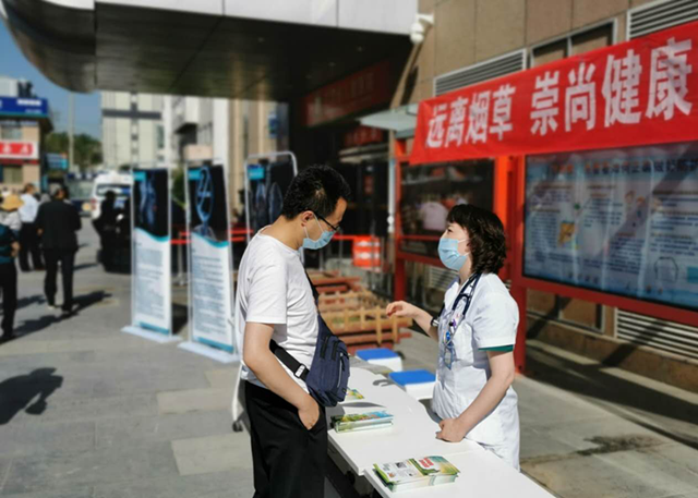 活动中,相关部门负责人及控烟工作领导小组工作人员向临床科室宣传医疗机构全面禁烟要求,并就入院患者禁烟宣教工作进行督查,同时向患者、家属发放“吸烟的危害”“健康戒烟”等禁烟宣传彩页,就无烟医疗机构、院内任何区域不得吸烟等相关内容进行宣教。呼吸专业医师还向有戒烟需求的人员提供了专业的戒烟知识和戒烟方案。