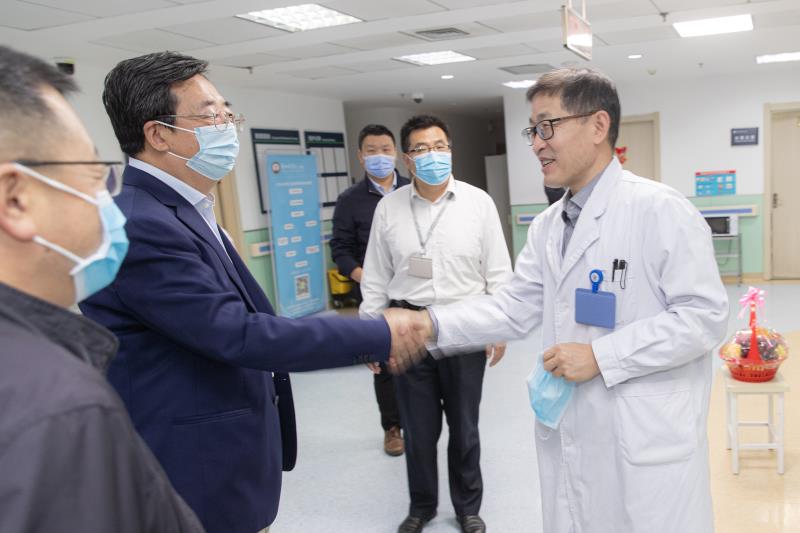 王锐来到骨科一病区,代表学校党委向临床一线辛勤工作的全体教师表示深深的感谢和衷心的祝福,并认真听取教师代表的意见建议。他指出,医生、教师,一个挽救生命,一个塑造灵魂,都是神圣的职业,面对突如其来的新冠肺炎疫情,广大医学教育工作者展现出了双重身份,既能奔赴武汉挡在抗击新冠肺炎疫情的最前线,又在全面复工复产复学后迅速投入到医学教育事业当中,赢得了全社会的和学生群体的广泛赞誉和普遍尊重。希望大家继续发扬爱岗敬业、无私奉献的高尚风范,在做好临床医疗、科研工作的同时,以传道受业解惑为己任,努力为社会培养出更加优秀的医学人才,为立博欧赔指数的医学教育发展作出更大贡献。