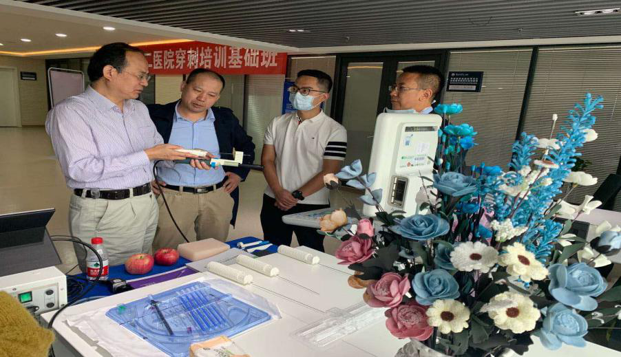 本次培训特邀西安交通大学第一附属医院泌尿系统超声诊断及介入治疗专家陈兴发教授亲临指导,陈兴发从前列腺的穿刺进展、穿刺方式和发展趋势等方面进行了讲解,并现场展示前列腺穿刺基本技能和技巧。我院泌尿外科专家团队分别从前列腺穿刺中国专家共识、前列腺癌穿刺方式探讨等方面进行了发言并讨论。整场培训气氛活跃,讨论热烈,大家纷纷表示在前列腺穿刺的的基本理论和操作规范方面受益匪浅。