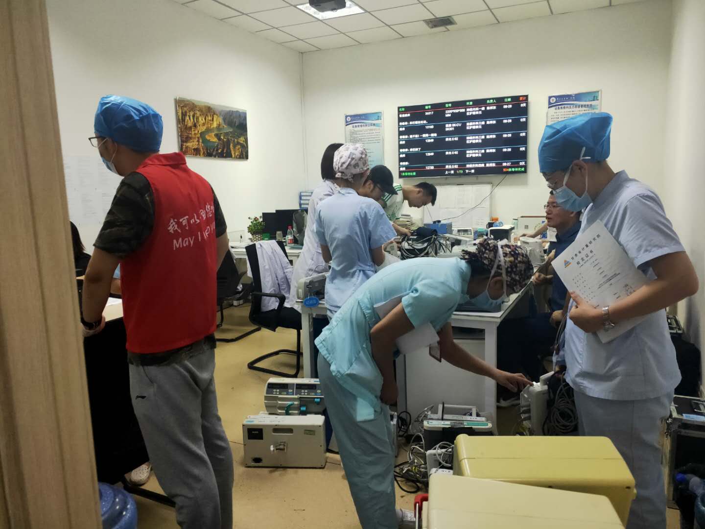 复检中,工作人员发扬不辞辛苦、连续作战的工作精神仅用三天就圆满完成了手术室、ICU等部门相关设备的检测计量工作,其中包括血压计190台、心电图机18台、多参数监护仪334台、心脏除颤仪5台、输注泵510台、DSA5台、CT1台、核磁2台、DR1台。在检测计量过程中,工作人员还为计量合格的医用设备及器具统一配发了合格标识。通过本次计量工作,积极推进了我院医疗设备的科学管理进程,助力医疗设备计量有据可查、有理可依、有章可循。