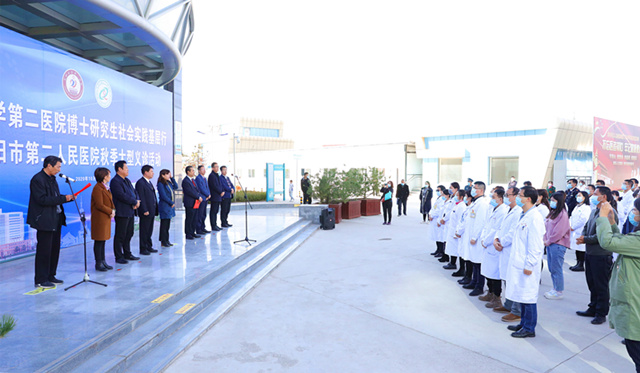为提高研究生社会实践能力,培养博士研究生“以人民为中心”的健康服务理念,增强服务基层人民群众的积极性,10月17日,研究生处组织在读博士研究生赴庆阳市第二人民医院开展大型义诊活动。庆阳市第二人民医院全体院领导出席义诊活动启动仪式,院长王振运代表医院致欢迎辞,我院研究生处处长聂芳教授详细介绍了博士研究生义诊团队人员组成、专业分布及选择革命老区庆阳进行社会实践的意义。