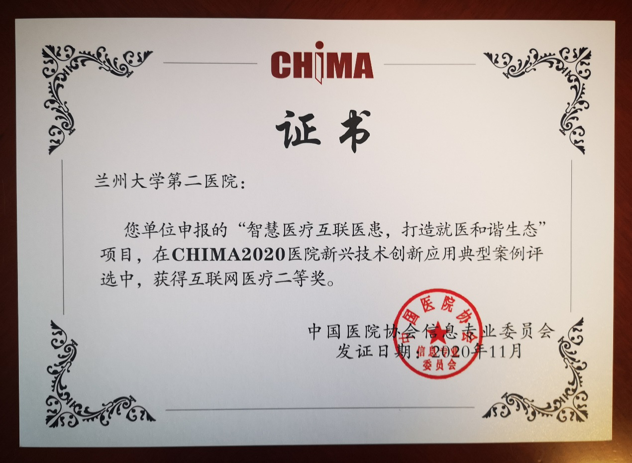 【喜讯】兰大二院荣获“CHIMA 2020医院新兴技术创新应用典型案例”二等奖