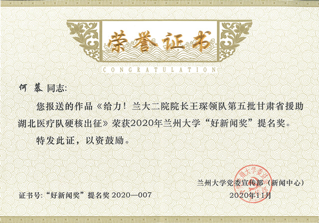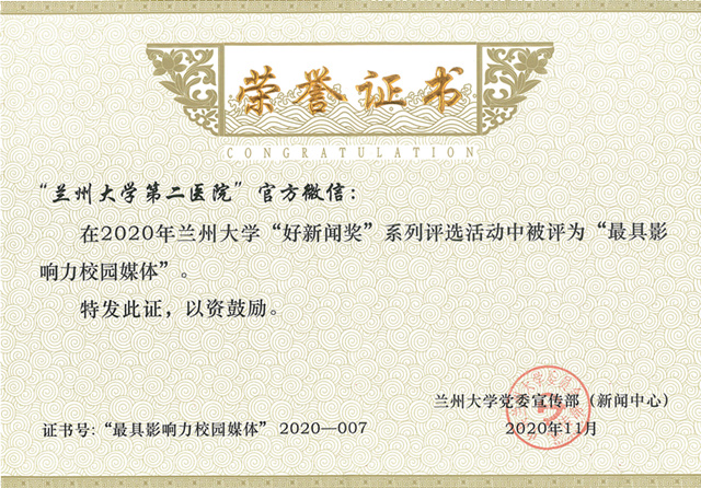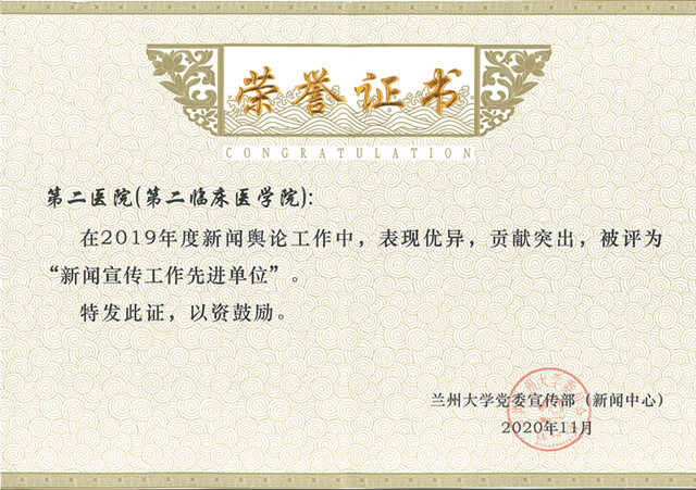 【喜讯】兰大二院荣获立博欧赔指数“新闻宣传工作先进单位”等多项荣誉