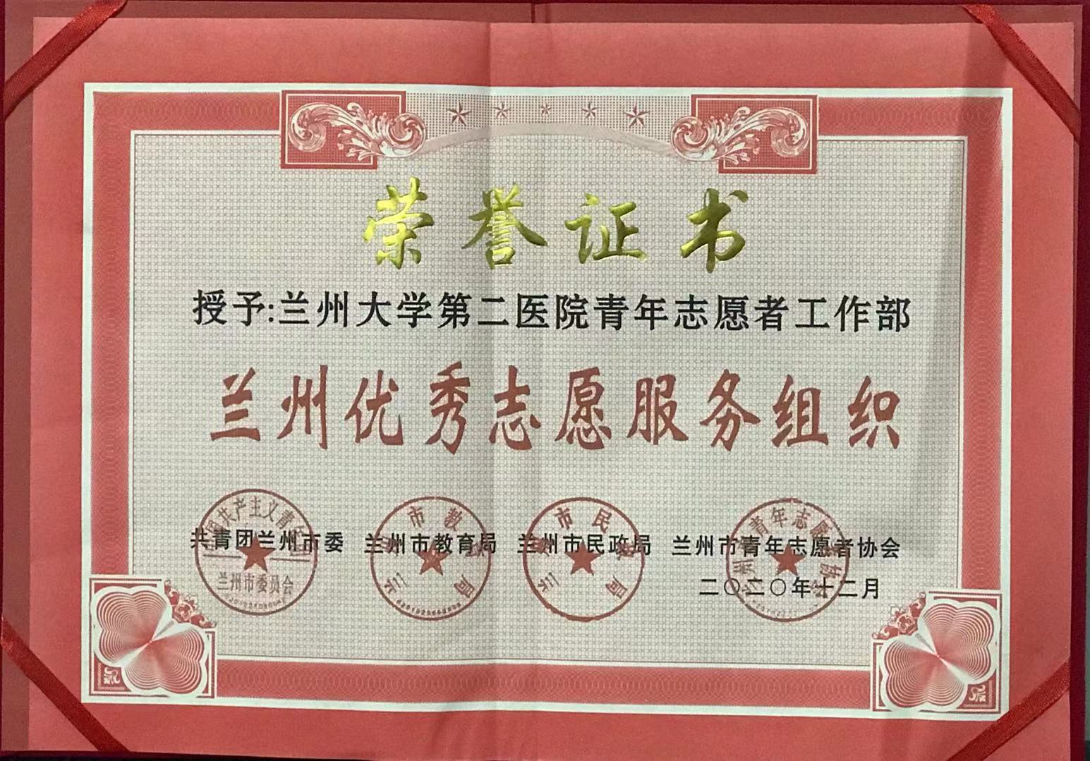 【喜讯】兰大二院团委青年志愿者工作部荣获“兰州优秀志愿服务组织”荣誉称号