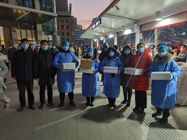 1月14日清晨,院工会主席常鹏、常务副主席张选奋及工会相关工作人员一行携带保暖靴及防寒用品等来到医院预检闸机口,看望慰问预检分诊一线工作人员。