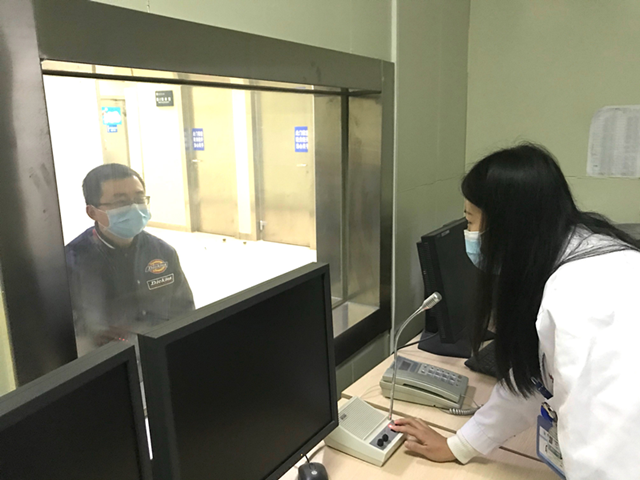 演练中,一名患者因确诊淋巴瘤行化疗4疗程后进行PET-CT疗效评估,测量体温正常,病人及陪员7日内核酸检测报告呈阴性。