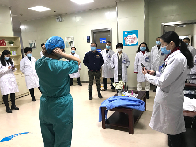 演练结束后,科室还就防护服的穿脱流程进行了专门的培训。通过本次演练有效提高了核医学科医护人员新冠肺炎应急处理能力,熟悉掌握了新冠肺炎患者流行病学史、临床症状和报告流程,落实消毒隔离制度,提高科室整体防控意识和团队协作能力。