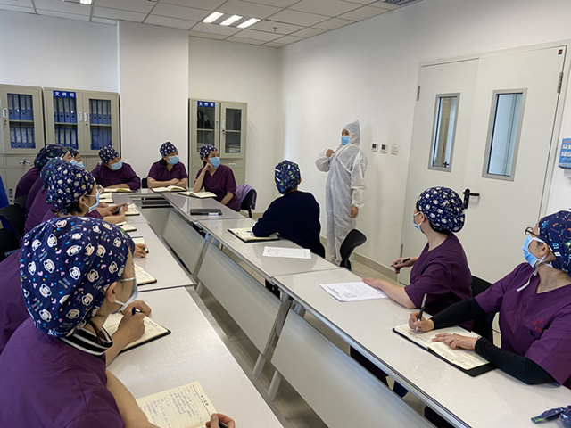 静配中心根据医院新冠肺炎应急演练大纲,结合自身工作情况制定出《静配中心新冠肺炎应急预案》,全体员工从清洁场地,穿脱防护服进行了应急演练,同时制定《静配中心新冠肺炎疫情防控工作重点》,组织学习实施。