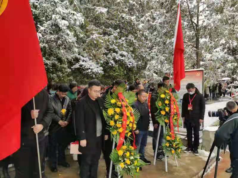 随后,一行人来到革命烈士纪念碑前,向英雄敬献花篮、鞠躬致敬,表达对革命前辈的沉痛哀悼和无限敬仰。