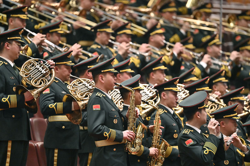 3月4日,中国人民政治协商会议第十三届全国委员会第四次会议在北京人民大会堂开幕。这是军乐团在演奏。