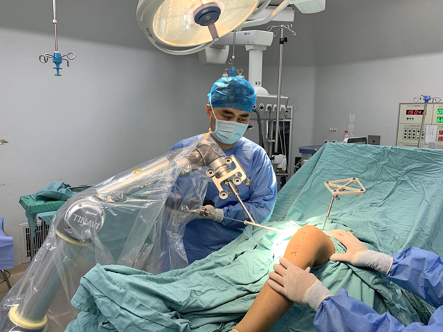 机械手臂完成导航,手术医生借助机械手臂完成韧带重建点的制备