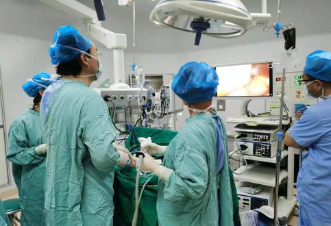 近一月来,兰大二院小儿外科联合NICU和麻醉科连续为4例先天性食管闭锁患儿行胸腔镜食管吻合手术,均取得了成功。其中一例为罕见的I型食管闭锁,两盲端距离超过了4cm,一般需要两次手术完成救治,本次一期手术吻合成功,术中麻醉医生进行了右侧支气管封堵,已正常哺乳出院。另外一例为ⅢA型,两例为ⅢB型,均进行了选择性左侧支气管单肺通气,右侧气管封堵,保证了手术顺利完成。