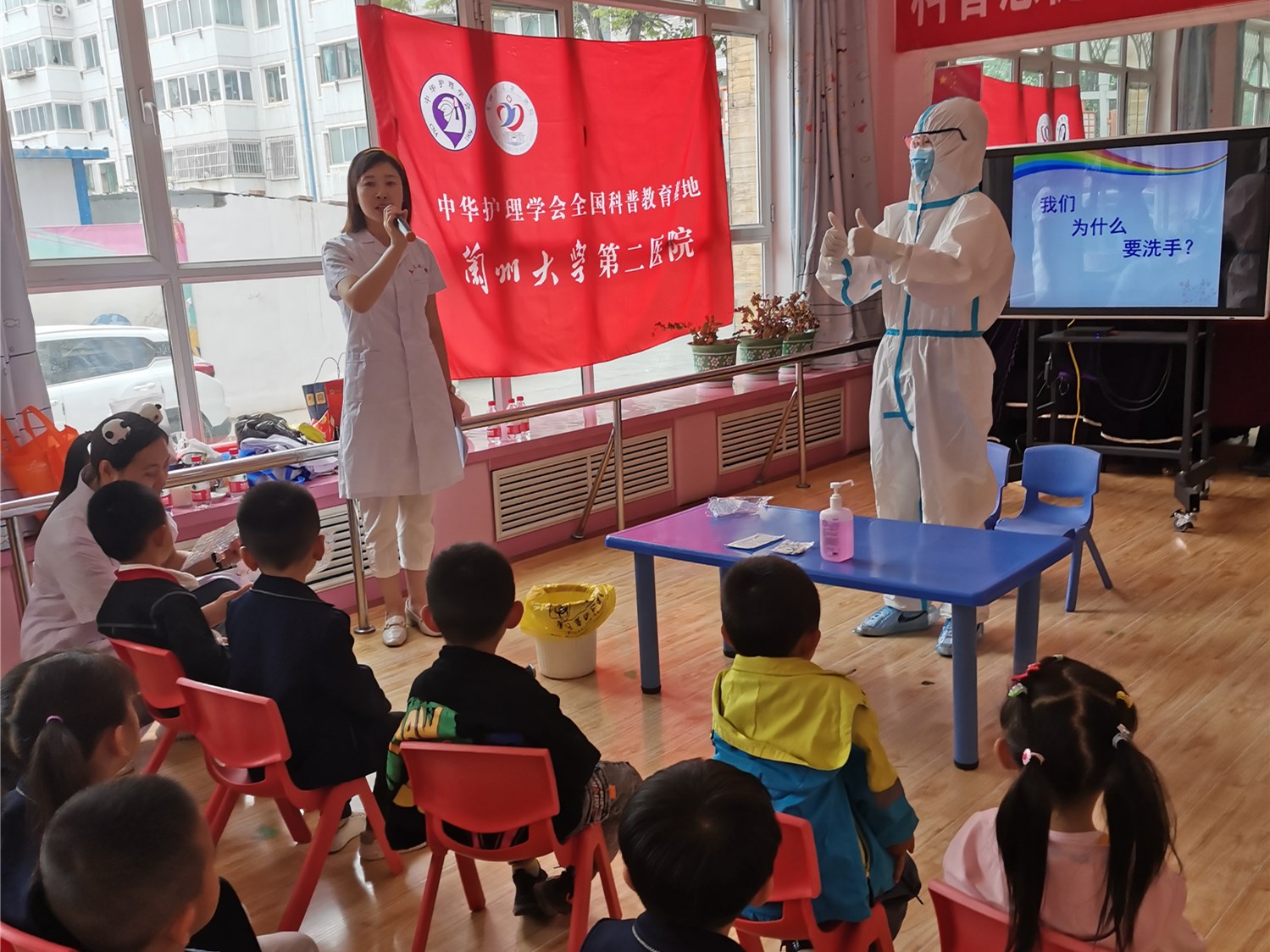 科普教育从娃娃抓起,为提高幼儿“有效防控疫情、科学健康饮食”的意识,5月18日,兰大二院内分泌代谢科护士们为安宁区长风保育院草莓二班的孩子们开展了穿脱防护服演示、手卫生PPT的知识讲座以及不良和正确的生活方式情景表演等科普活动。