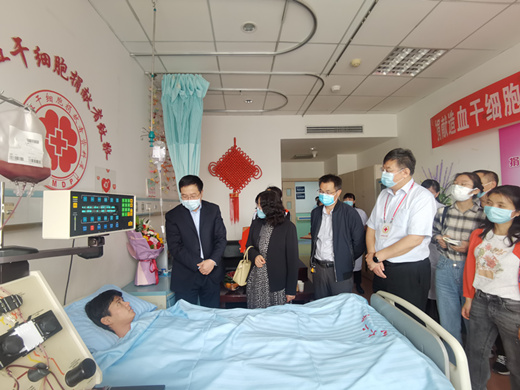 5月21日,我省第43例造血干细胞捐献者卓大标在我院血液科一病区造血干细胞采集室完成捐献,他是中华骨髓库第11350例,甘肃省分库第43例成功捐献者,也是兰州理工大学的首位造血干细胞捐献者。甘肃省红十字会党组书记、专职副会长杨芳胜,甘肃省红十字会健康促进办二级调研员候纯蕊,兰州市红十字会专职副会长王明杰、秘书长姚刚,兰州理工大学学生处副处长李荣华,石油化工学院党委副书记张飞龙,我院医务处副处长张长禄等前往慰问并颁发证书及奖牌,向他表示崇高的敬意和亲切的问候,感谢他为患者带来重生的希望。