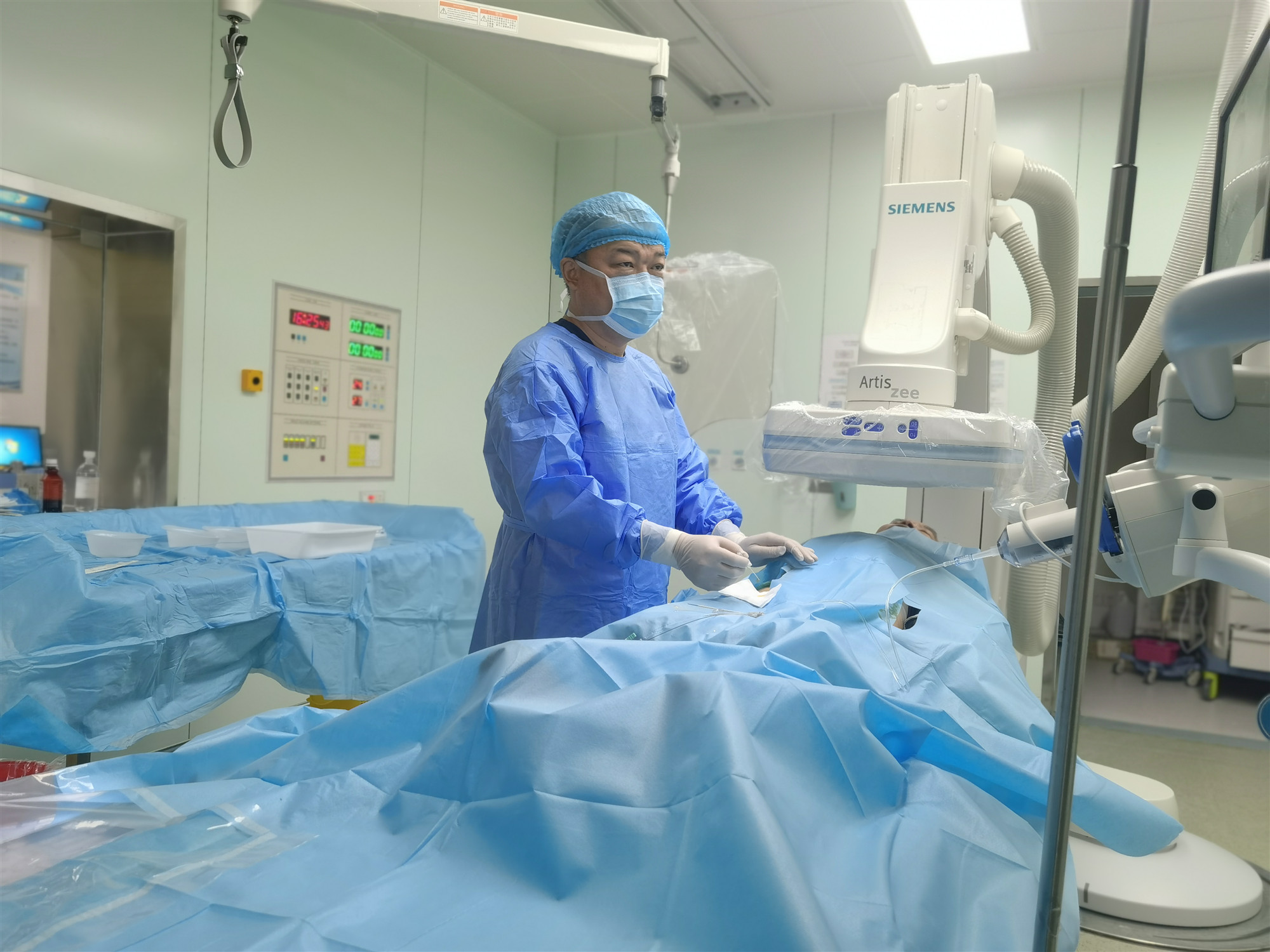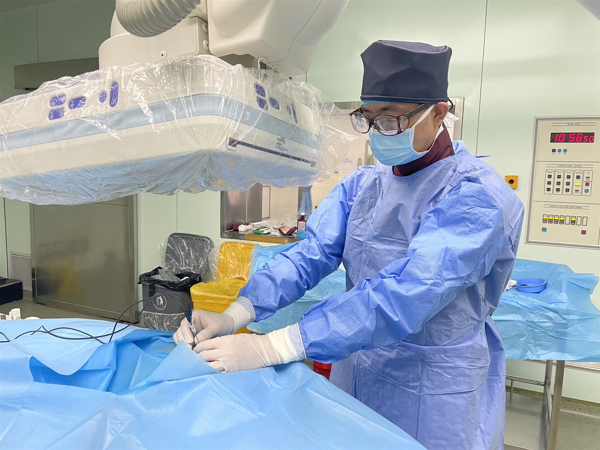汪五全:肿瘤中心介入科主任。2001年7月1日入党。图为2021年4月14日下午,在DSA手术室,汪五全身着重达15公斤铅衣如铠甲,像将军一样冷静、沉着、认真对待每台手术。汪五全始终践行“健康所系、性命相托”的医学誓言,以厚德为基,立志高远;以精医为础,不断创新;以博学为根,博采众长;以笃行为本,坚持不懈。忆往昔峥嵘岁月,看今朝国富民强!