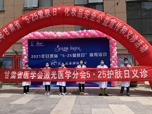 5月25日是第十五届全国“护肤日”,本届活动主题是“后疫情时代的科学护肤”。活动当天,省、市药品监督管理局,省药品和医疗器械不良反应监测中心、兰州市市场监督管理局、兰州市食品药品安全监测和评审中心、省医学会激光医学分会及我院皮肤科联合开展“安全用妆,美丽有法——关注儿童用妆安全”义诊宣教活动。甘肃省药品监督管理局副局长王宗伟、化妆品监管处处长张俊华,我院副院长白锋、医务处处长何继瑞等出席活动。我院皮肤科全体医护人员参加活动。