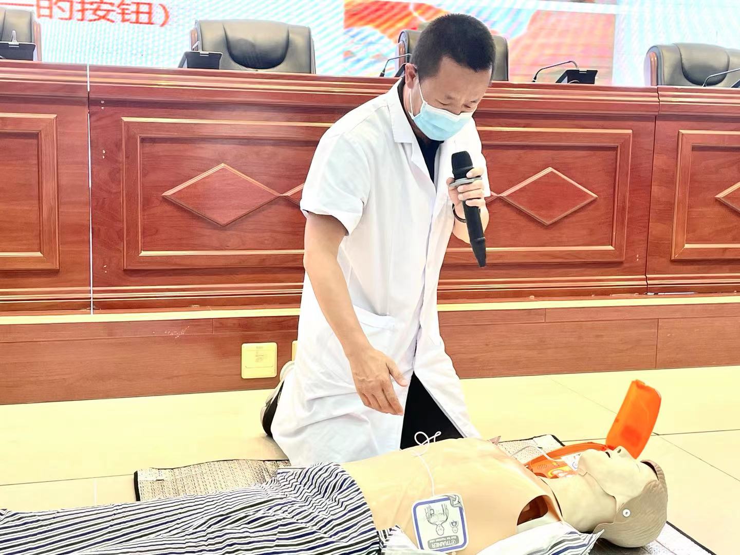 活动中,李培武以“黄金4分钟”为切入点,详细介绍了心肺复苏术及AED操作方法,并通过具体案例强调了心肺复苏术的重要性以及全民掌握心肺复苏术的必要性。