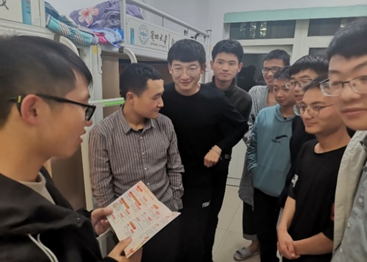 舍长为学生讲解《学生入党指南》