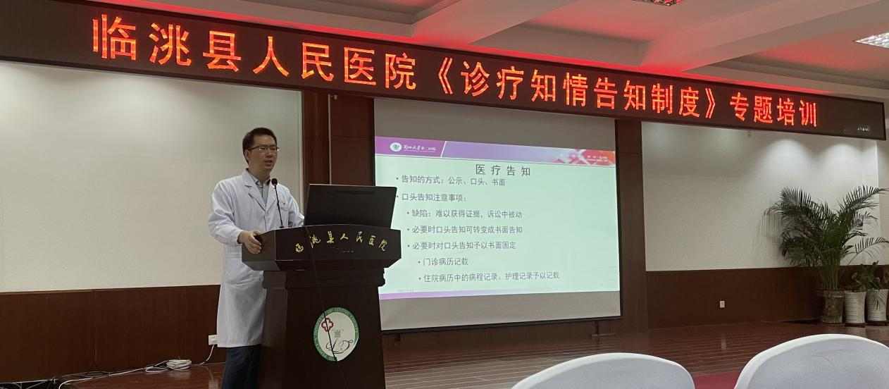 泌尿外科医师桂惠明为临洮县医院全体医护人员进行题为《诊疗知情告知制度》专题培训