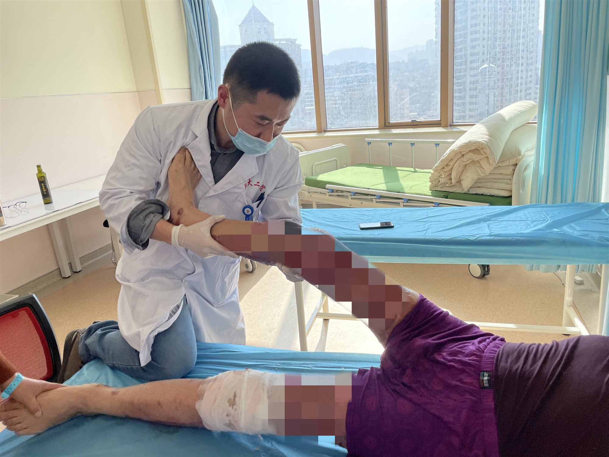 田亚菲:烧伤整形与创面修复外科主治医师,2011年4月5日入党。图为田亚菲给烧伤患者做康复功能活动锻炼。100年光辉岁月,100风雨历程,站在两个100年交汇的伟大历史时刻,倍感荣幸。党旗所指就是前进的,在建党百年之际,我们要把自身工作与党史学习紧密结合,努力为人民群众提供优质的医疗服务资源,百年大党风华正茂,前进路上党辉相照!