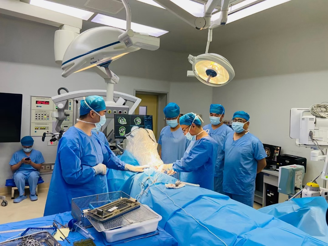 近年来,手术机器人在神经外科获得广泛开展,主要包括脑出血穿刺引流术、立体定向脑活检术、SEEG电极植入术、脑深部电刺激(DBS)电极植入术、辅助显微神经外科或内镜神经外科手术、脊髓脊柱手术等领域。微创手术智能化手术将是未来医学的发展趋势,此次神经外科手术机器人的成功开展,对促进我院乃至我省神经外科的精准和微创化发展具有重要意义。