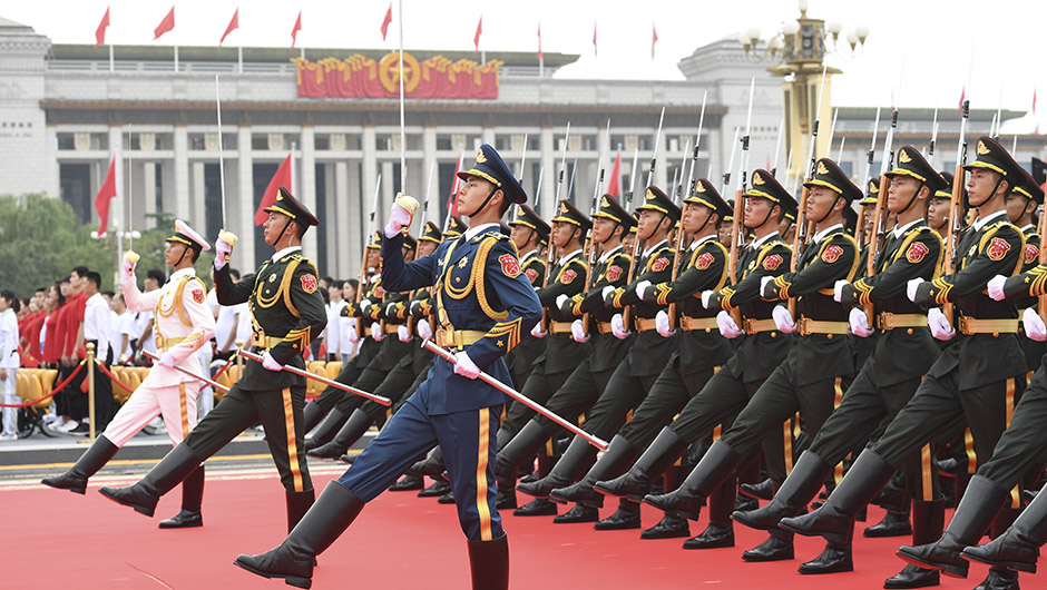 这是国旗护卫队准备升旗。新华社记者 李鑫 摄