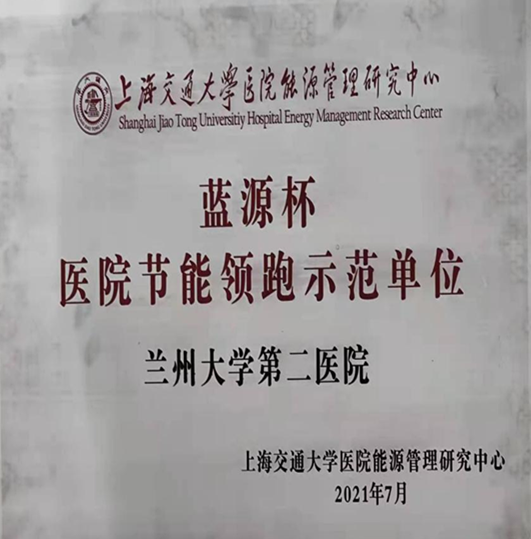【喜讯】兰大二院荣获“蓝源杯医院节能领跑示范单位”荣誉称号 热力中心节能改造项目荣获“节能领跑者示范项目”