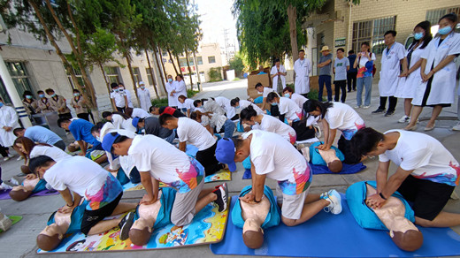 7月16日上午,团队抵达敦煌市医院,经过半天的调整,实践团参加了由该院组织的医疗风险防范培训会和心肺复苏知识讲座,会议强调了医疗风险防范的重要性、医务人员告知义务、注意义务等相关事项。会议结束后,实践团与敦煌市医院医务人员一起进行了心肺复苏实际操作演练,在专业人员的手把手指导教学下,团队成员们体会到了生命的宝贵和救助他人的辛苦,也意识到在紧急情况下正确抢救患者的重要性。