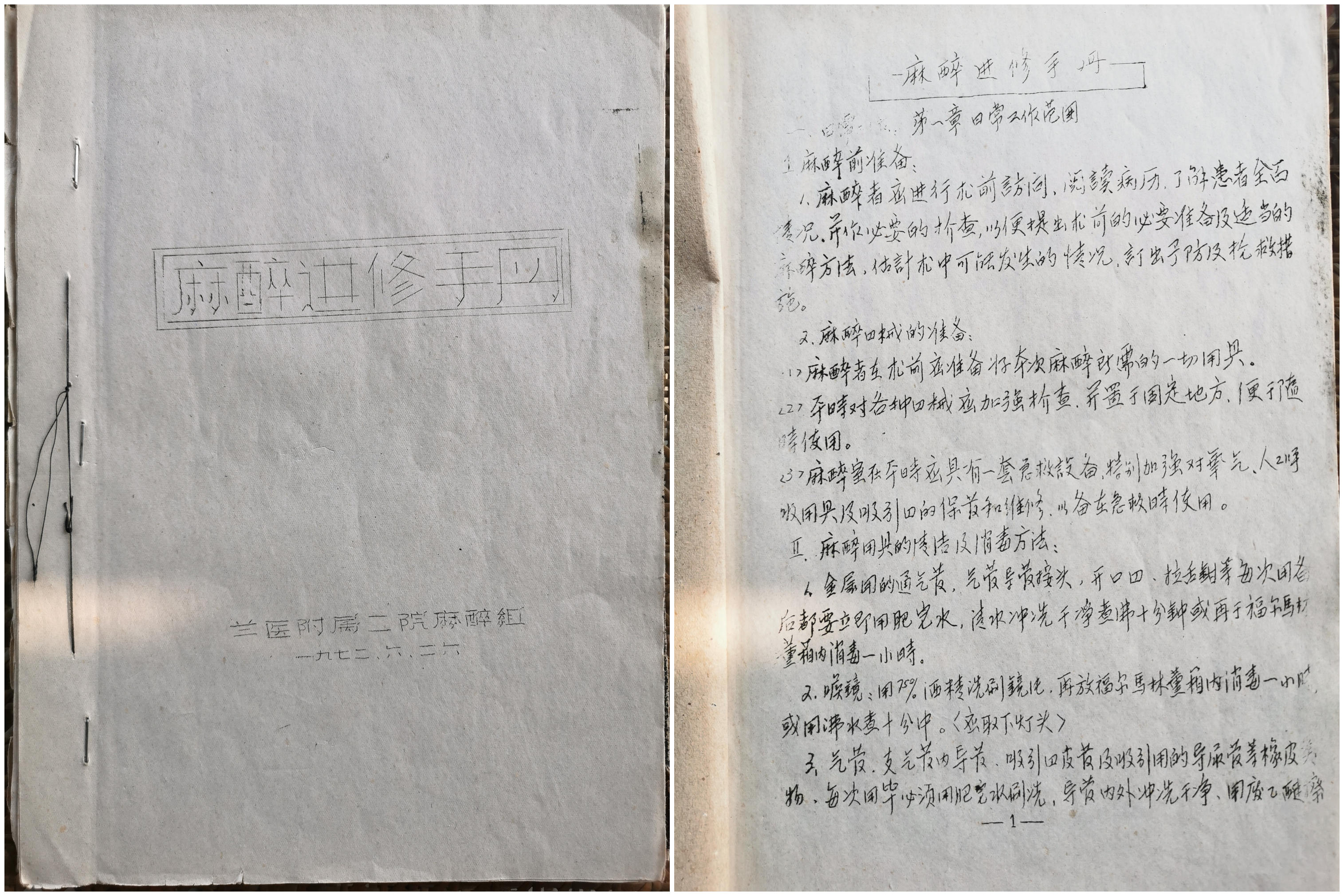 马丽华教授主编的《麻醉常规》和《麻醉进修手册》蜡印本