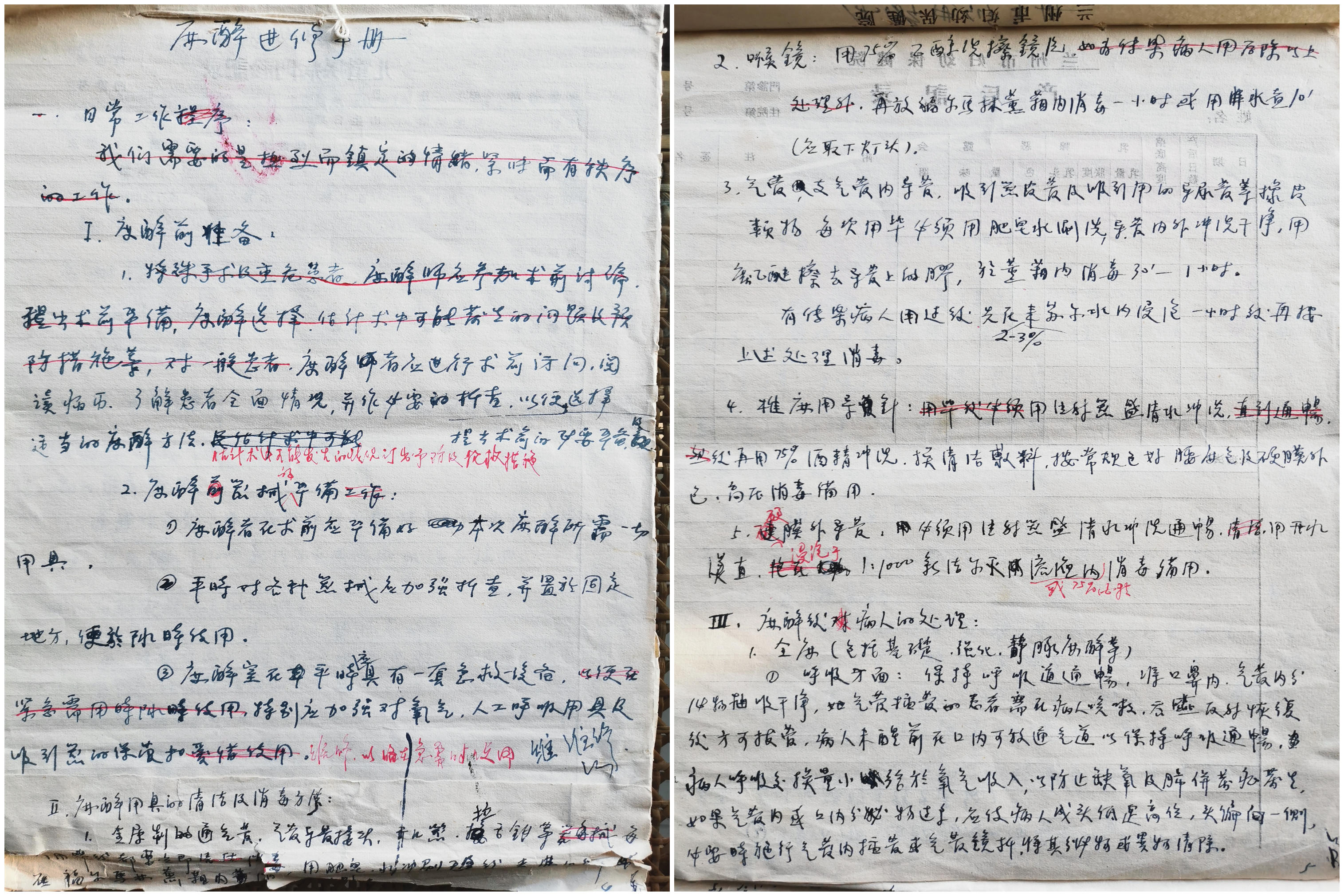 《麻醉进修手册》手稿