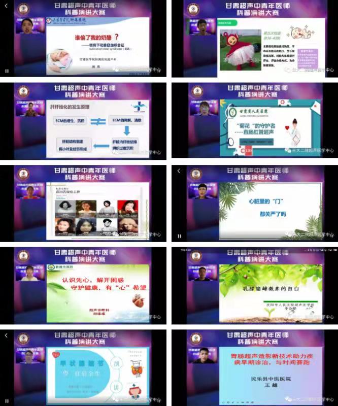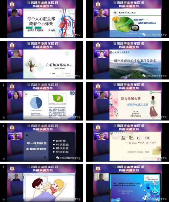 8月21日,由甘肃医师协会超声分会、甘肃医学会超声分会、甘肃超声质控中心主办,我院超声医学中心承办的“甘肃超声中青年医师科普演讲大赛(初赛)”以线上形式举行。来自省内各级医院的49名超声医师参加大赛。本次大赛旨在提升甘肃超声医师健康科普能力,推广超声相关科普,更好地服务患者和大众,受到广泛关注,线上直播点击率达26万多人次。