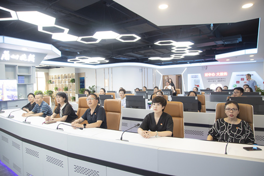 从报史馆出来后,大家又来到兰州市新时代文明实践中心、兰州日报社融媒体中心。宽敞的办公区域、完善的硬件设备、全新的全媒体演播室等映入眼帘,通过讲解大家了解到兰州日报社融媒体中心依托移动互联网技术,深度融合权威媒体资源,优化再造机制流程,打造出以一次采集、多种生成、多维传播的融合采编方式,逐步形成“报、网、微、端、屏”全方位立体传播体系。同时,运行以“兰州日报社融媒体中心+兰州市新时代文明实践中心”双平台为依托的发展体系,通过提供党建、政务、教育、科技、文化、体育健身等服务,实现文明实践活动“网上号召、线下响应、全媒传播”的新模式。