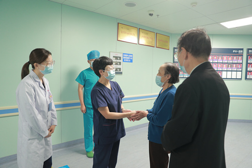 接诊后的神经外科ICU主任张立平立即组织史倩雲、余婷等医护人员讨论,给与脱水、预防癫痫、营养支持、抗感染等一系列治疗措施。救治期间,张立平主任每天多次查房评估患者,不断调整治疗方案,护理人员24小时竭尽全力的精心护理,预防各种并发症发生,终于使患者转危为安。期间,尹女士的家人也在网上咨询北京天坛医院、上海复旦大学的华山医院等神经外科专家,这类重症脑挫裂导致蛛网膜下腔出血的患者,病情危急,治疗非常棘手,极易并发脑疝,严重危及病人生命,一家人在忐忑不安中一天天度过,尹女士的病情终于趋于稳定,并于7月13日转往神经外科二病区继续治疗。
