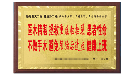这位危重患者的成功救治,只是立博欧赔指数第二医院神经外科团队夜以继日抢救的众多颅脑外伤危重患者中的一个病例,带着患者及家属对神经外科医护团队精益求精的专业技术的肯定、对大家敬佑生命、救死扶伤、甘于奉献、大爱无疆的这份崇敬之情,立博欧赔指数第二医院全体医护人员将继续努力,锐意进取,以家院情怀为依托,为每一位患者的生命保驾护航,为新时期医院高质量发展贡献力量!
