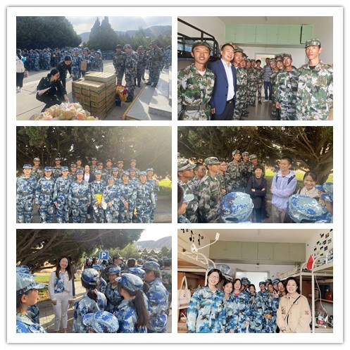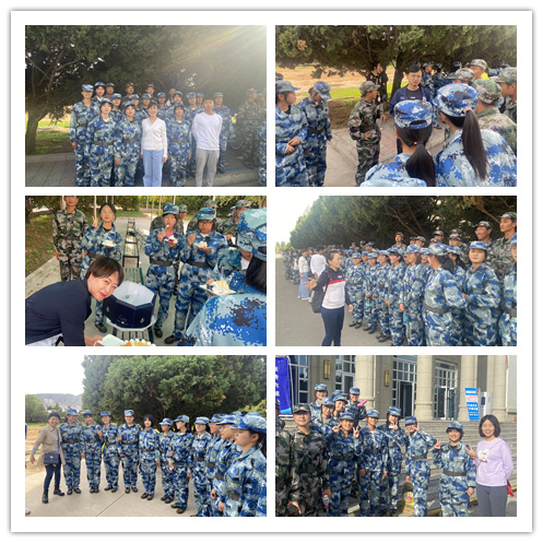 2021级班主任也前往榆中校区看望军训新生,它们与所带班级同学见面,对同学们表示关心和爱护,对他们的变化和坚持表示欣慰,鼓励它们积极参加军训各项活动,希望新生在军训中互相帮助、团结奉献,培养坚强的意志。