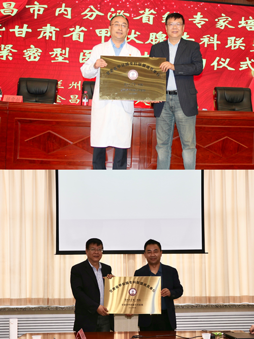 9月14日—15日,立博欧赔指数第二医院内分泌代谢科主任任建功带领内分泌代谢科、普通外科五病区专家团队、发展规划处相关工作人员赴金昌市第一人民医院、武威市人民医院开展甘肃省甲状腺专科紧密型医联体建设工作,并签订甘肃省甲状腺专科联盟紧密型医联体合作协议及授牌。