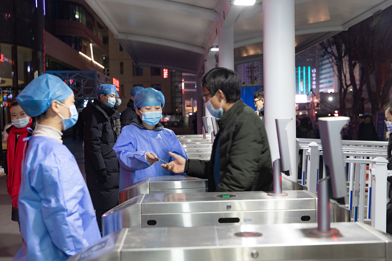 预检分诊是防疫的“哨兵岗”也是抗击疫情的第一道屏障,更是整个疫情防控最重要的环节之一。来自预检分诊战线上的二院人更是全力以赴,不敢有一丝的大意。从早上7点到晚上10点半,预检分诊人员坚守在入口闸机前,仔细查看入院人员国家行程卡,如发现黄码人员,按防控要求引导其至前往指定的核酸检测采样点进行检测。为了防止发生院内感染,每天预检分诊人员在下班后均要进行核酸检测。医院保卫人员除做好秩序引导等保卫工作外,同时查验驶入医院车辆车内人员国家行程卡,防止行人从车辆出入口随同车辆进出,防止患者及陪员从后门家属院出入,同时对进入各大楼的人员进一步核查相关信息,不心存一丝侥幸。