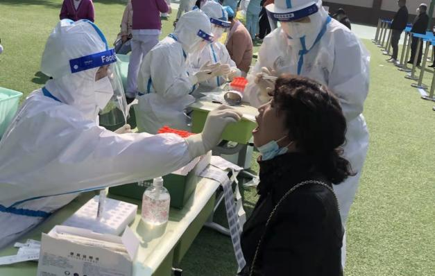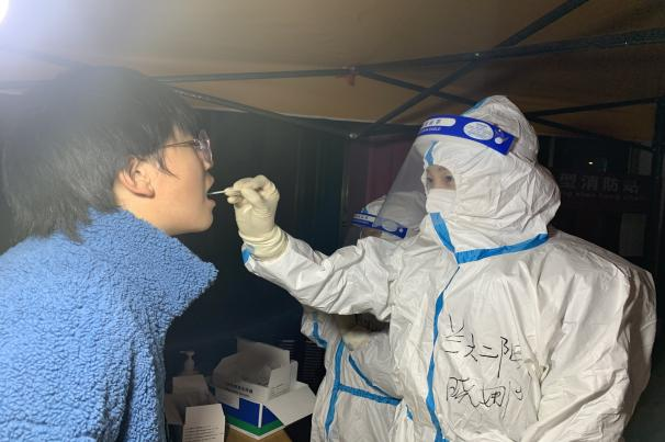 在采集的过程中,最大的感受就是嗓子疼,耳朵疼。由于是全副武装,队友之间的互相交流也很难听清,每句话几乎都是喊出来的。在忙碌而有序的工作中,10月22日凌晨3点,我们终于完成标本的采集、样本装箱工作,等到标本收走之后已经是凌晨4点左右。早上7:30分,我们一组成员又到达了第二个核酸采集点——雁北路小学,一直到下午6:30,终于完成了第一轮的全民核酸的采集工作。