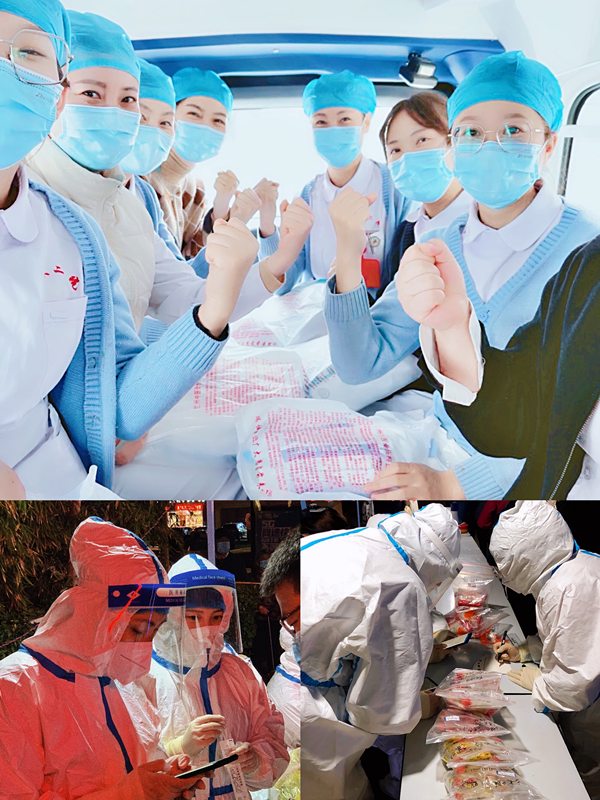 10月21日,医院紧急抽调医务人员组成第一批核酸样本采集队,赴全市34个社区和街道开展核酸采集工作。21日中午突然接到紧急支援兰州各采集点的任务,特需门诊除三位已有身孕的同事,其他姐妹们顾不上午饭、来不及更衣便紧急集合出发,赶赴核酸采集工作第一线。姐妹们没有一句怨言,跑步到集合点,随即坐上了去往采集点的车,一路上,相互加油、打气,既兴奋又紧张。随后,特需门诊一组10人被分配到城关区鸿运润园南门采集点,由邵兰春护士长带队,大家个个精神抖擞,豪无惧色。长长的队伍,是等待采样群众焦急的期待,我们的到来,让群众看到了希望的曙光,抚慰了他们不安的情绪。