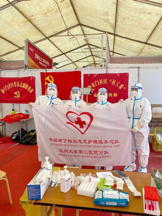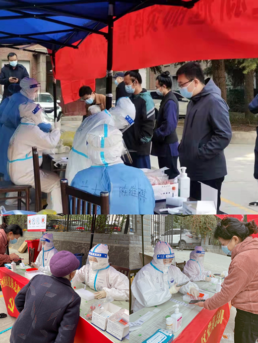 到达“战场”,参战人员片刻未歇便穿戴防护装备、做好消杀工作,随即投入到了紧张的“战斗”之中。在统一指挥下,迅速分工,立即上岗,查验健康码,录入信息,采集核酸,采集全程分工协作,繁而不乱,一切有条不紊的持续进行。采集现场的我们没有片刻的休息,没有丝毫的喘息,更没有一声叫苦叫累,对待工作,我们规范操作,面对群众,我们耐心细致。10月的兰州,午后寒气袭人,大家精神集中,高强度的工作使我们没有丝毫的困意。群众一遍遍道出“你们辛苦了”、大爷大妈反复叮嘱“你们也要当心”、小朋友一声声稚嫩的“谢谢阿姨”和充满敬意的少先队礼,都让人不禁暖心泪目,也使我们更加精神抖擞,干劲十足。干部保健处5名医务人员也在其他采集点艰苦奋战,顺利完成了核酸采集任务。